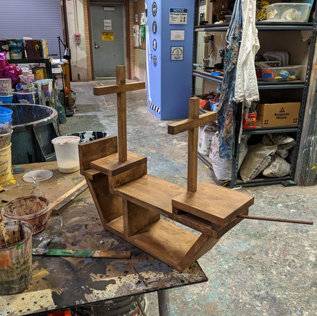 An assignment for my advanced stagecraft class. I had to craft something with at least six different joints. I designed a shipself, a shelf that looks like a ship!